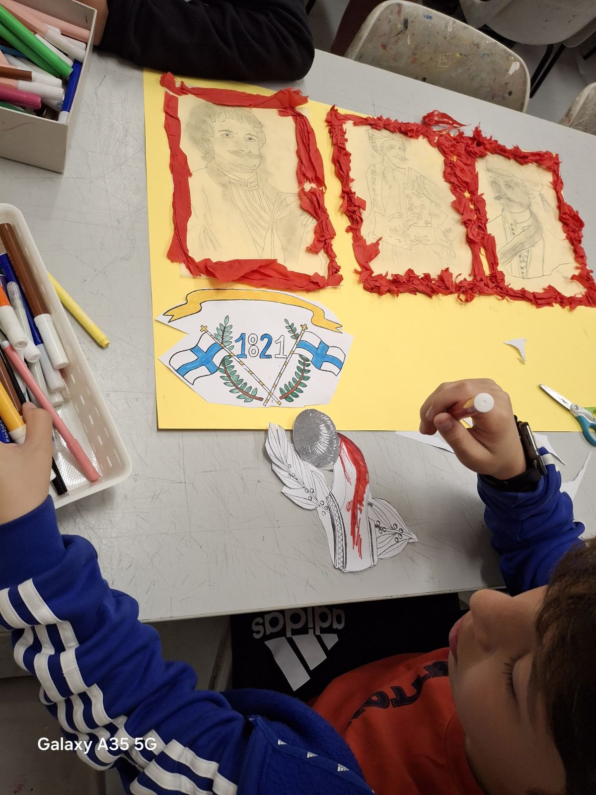 Τον Μάρτιο, οι μαθητές/τριες της ΣΤ τ́άξης υλοποιήσαν μια σειρά εκπαιδευτικών δράσεων στο πλαίσιο της ενότητας Γ΄του μαθήματος της Ιστορίας. Συγκεκριμένα, συμμετείχαν σε βιωματική δραστηριότητα με θέμα τη Φιλική Εταιρεία και τον ρόλο της στην προετοιμασία της Ελληνικής Επανάστασης. Επιπλέον, δημιούργησαν προσωπογραφίες ηρώων της εποχής, αναδεικνύοντας πτυχές της περιόδου που δεν περιλαμβάνονται στα σχολικά βιβλία.