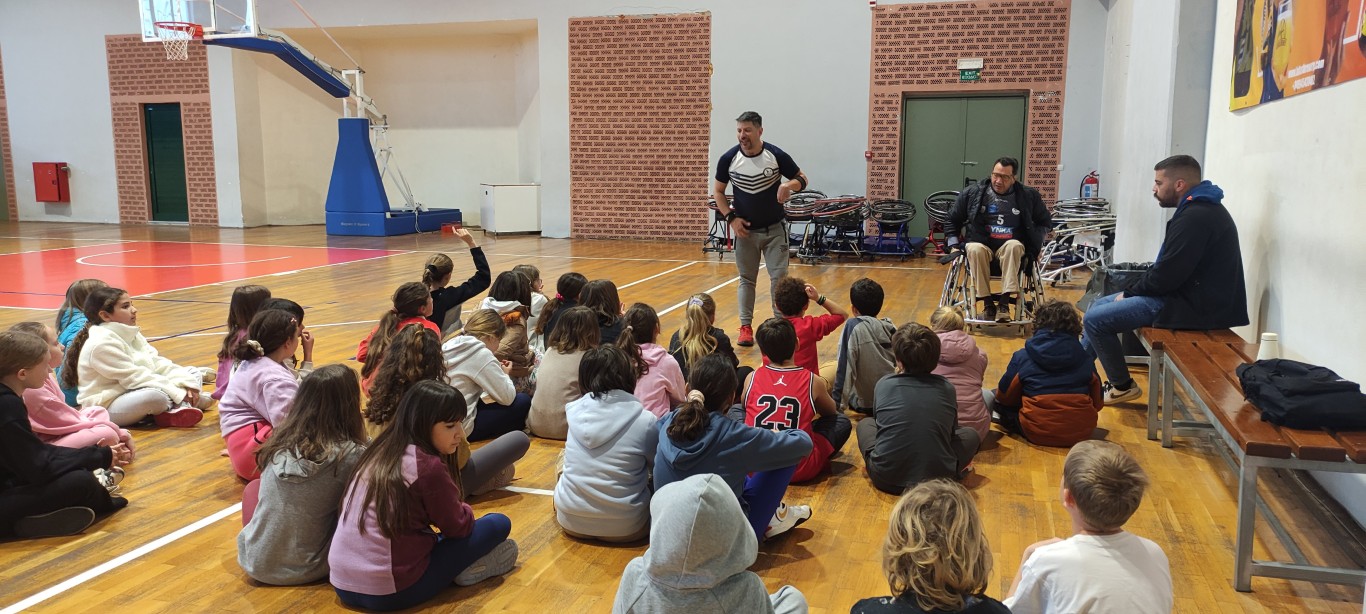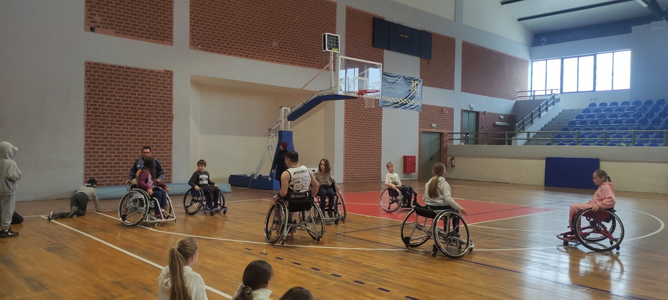 Η τάξη μας επισκέφθηκε το Κλειστό Γήπεδο της Σούδας, όπου είχε την τιμή να γνωρίσει και να αγωνιστεί δίπλα στην ομάδα μπάσκετ με αμαξίδια "Αετοί Κρήτης". Οι μαθητές μας φόρεσαν ζώνες ενσυναίσθησης, κάθισαν σε αναπηρικά αμαξίδια και δοκίμασαν στην πράξη τι σημαίνει να ξεπερνάς εμπόδια με θέληση, συνεργασία και πάθος για ζωή. Η δράση αυτή δεν ήταν απλώς ένα παιχνίδι.
