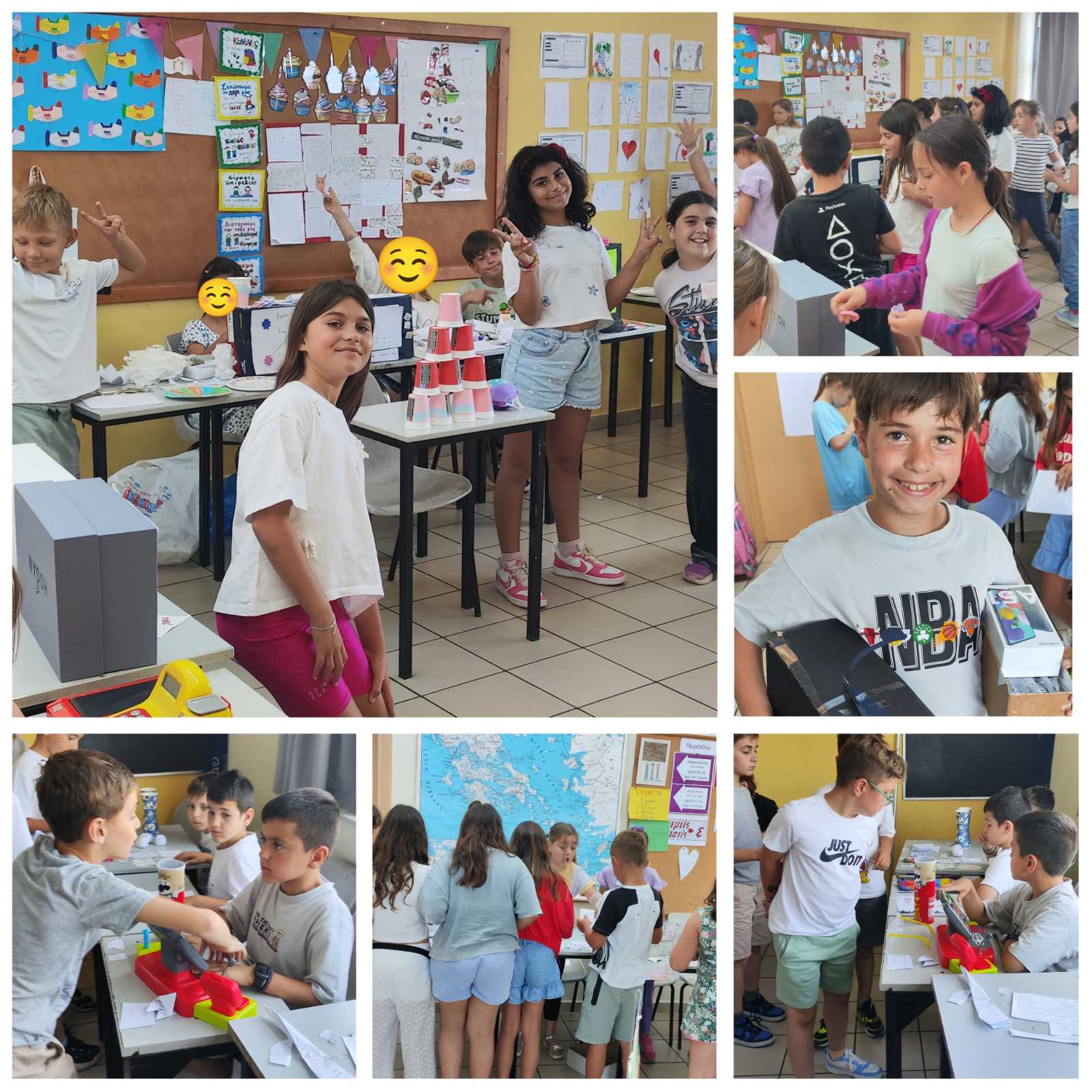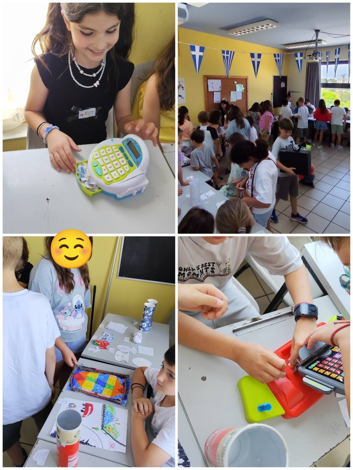 Οι μαθητές της Γ’ Τάξης στο πλαίσιο του 4ου θεματικού άξονα των Εργαστηρίων Δεξιοτήτων «Δημιουργώ & Καινοτομώ – Δημιουργική Σκέψη και Καινοτομία» συμμετείχαν στο πρόγραμμα «Στην τσέπη χαρτζιλίκι…», μέσα από το οποίο γνώρισαν βασικές οικονομικές έννοιες και έμαθαν να ξεχωρίζουν το «χρειάζομαι» από το «θέλω». Η δράση ολοκληρώθηκε με ένα παζάρι, όπου τα παιδιά πούλησαν χειροποίητες δημιουργίες χρησιμοποιώντας ψεύτικα χρήματα. Μια διασκεδαστική εμπειρία με μεγάλη εκπαιδευτική αξία, που τους βοήθησε να εφαρμόσουν στην πράξη όσα έμαθαν!