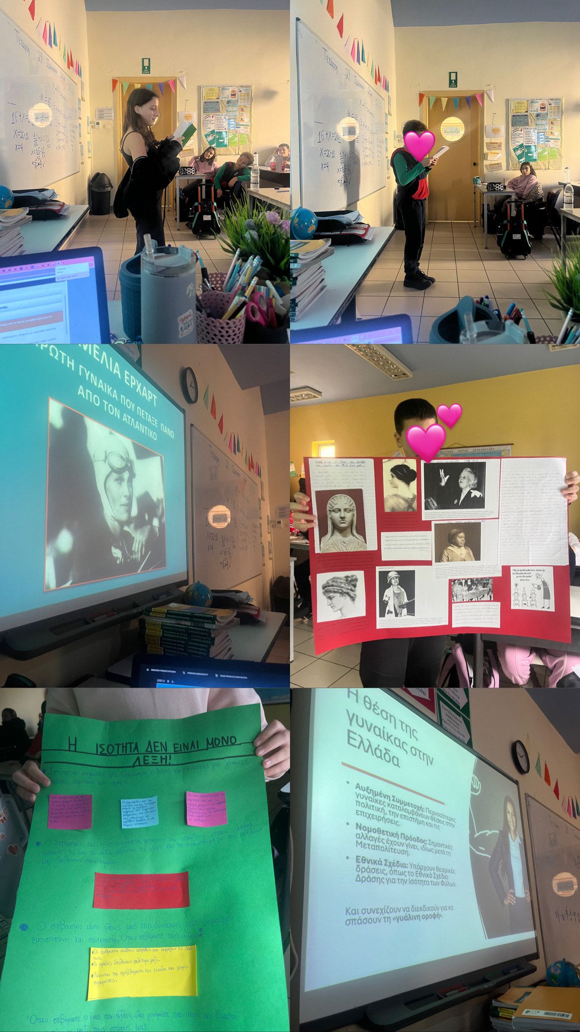 Κατά τη διάρκεια του β΄ τριμήνου, στο πλαίσιο του μαθήματος της Κοινωνικής και Πολιτικής Αγωγής και της ενότητας που αφορά τα ανθρώπινα δικαιώματα, οι μαθητές και οι μαθήτριες της ΣΤ΄ τάξης υλοποίησαν εκπαιδευτική δράση με θέμα «Γυναίκες που άλλαξαν τον κόσμο». Οι μαθητές εκπόνησαν και παρουσίασαν ατομικές εργασίες, μελετώντας τη ζωή και το έργο σπουδαίων γυναικών που συνέβαλαν καθοριστικά στην κοινωνική, πολιτική, επιστημονική και πολιτιστική εξέλιξη της ανθρωπότητας. Ιδιαίτερη έμφαση δόθηκε στη διαχρονική αξία της προσφοράς τους, τόσο στο ιστορικό πλαίσιο της εποχής τους όσο και στη σημασία των αγώνων τους στη σύγχρονη κοινωνία.