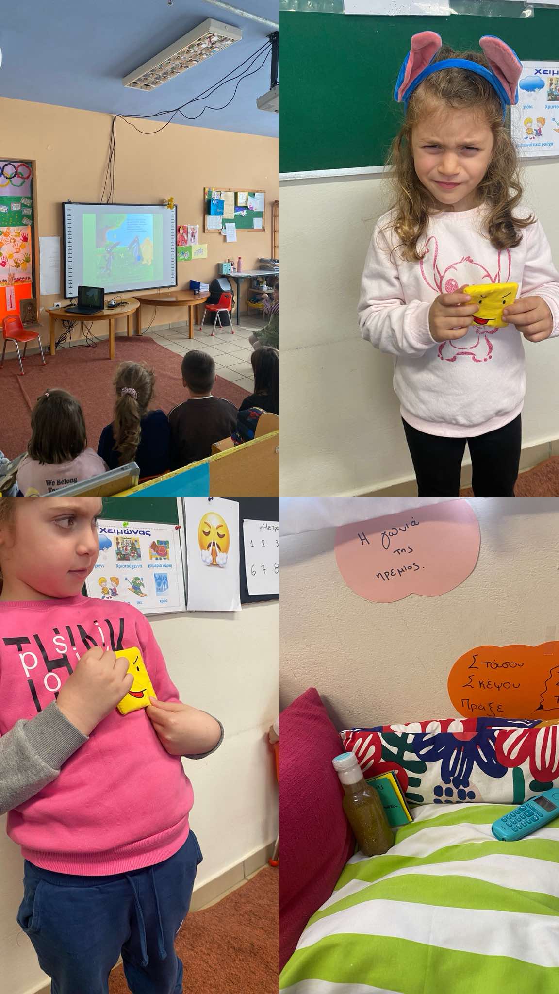 Στο Νηπιαγωγείο, στο πλαίσιο της Συναισθηματικής Αγωγής, μιλήσαμε για το συναίσθημα του θυμού. Τα παιδιά κατανόησαν ότι όλα τα συναισθήματα είναι αποδεκτά. Μέσα από συζήτηση και βιωματικές δραστηριότητες είχαν την ευκαιρία να αναγνωρίσουν πότε θυμώνουν, να εκφράσουν το πως αισθάνονται και να μάθουν τρόπους να διαχειρίζονται τον θυμό τους με θετικό και ασφαλή τρόπο. Τέλος, μέσα στην τάξη δημιουργήσαμε τη «γωνιά της ηρεμίας», μέσα από την οποία τα παιδιά μαθαίνουν να ηρεμούν και να διαχειρίζονται τον θυμό τους, μετρώντας μέχρι το 10!