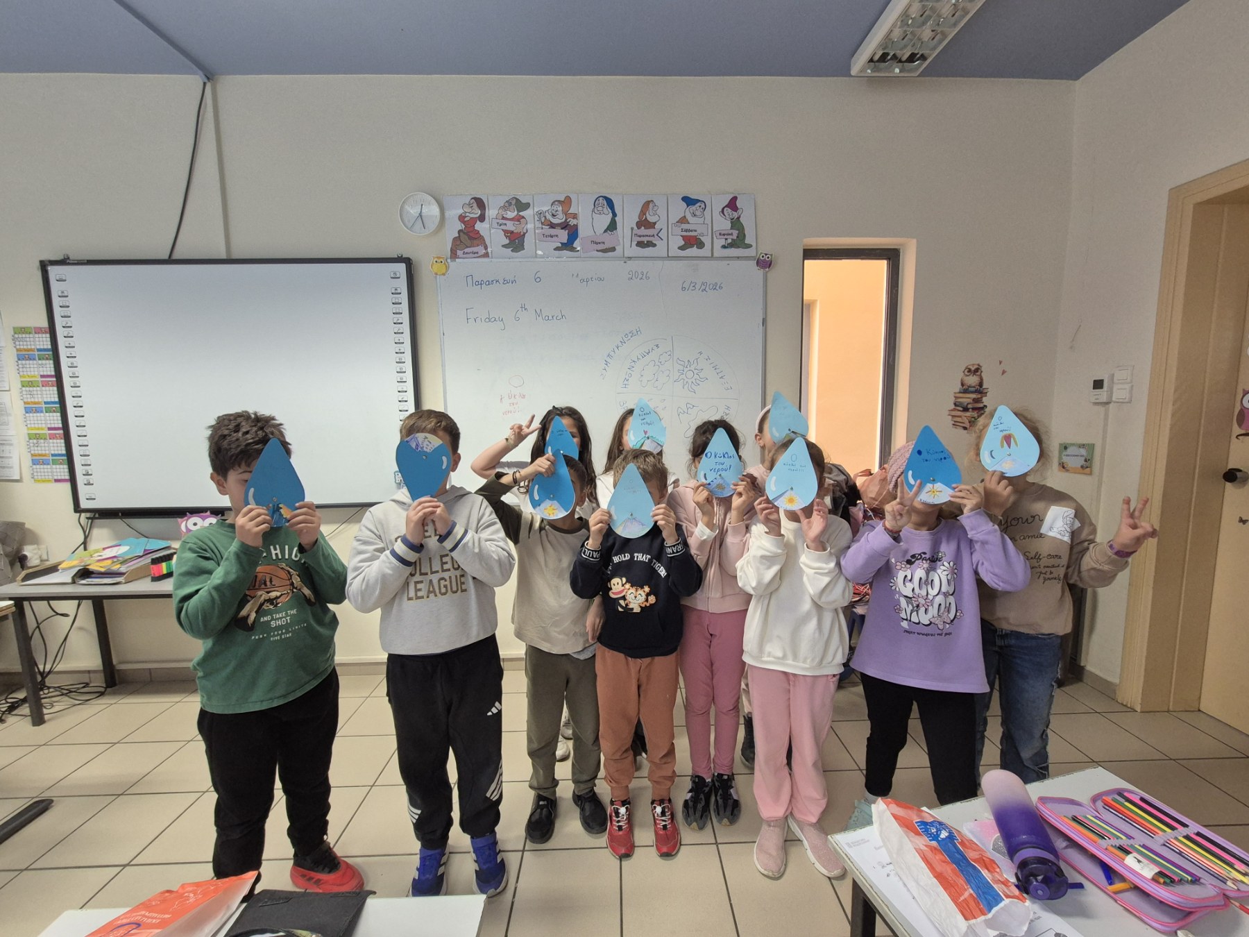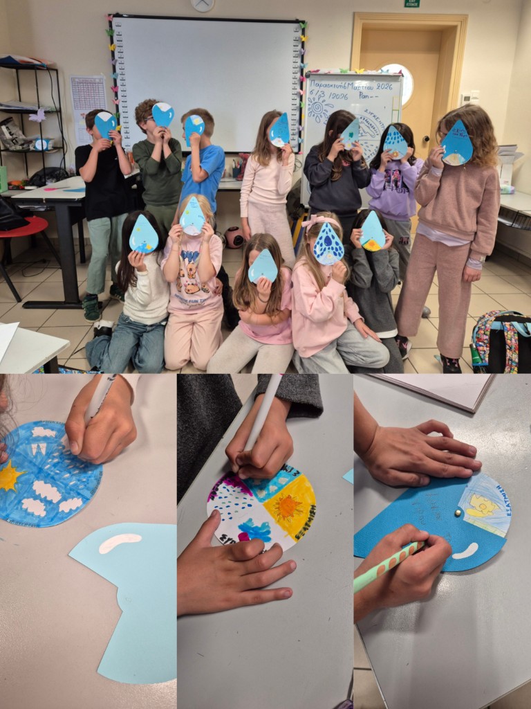 Τον Φεβρουάριο κα τον Μάρτιο, οι μαθήτριες και οι μαθητές της Β΄ τάξης, ασχολήθηκαν με το «Νερό». Με αφορμή το Μάθημα της Μελέτης Περιβάλλοντος, τα παιδιά στα Καλλιτεχνικά και σε συνεργασία με τον εκπαιδευτικό της Πληροφορικής πραγματοποίησαν δράσεις σχετικές με το νερό και τον κύκλο του νερού.