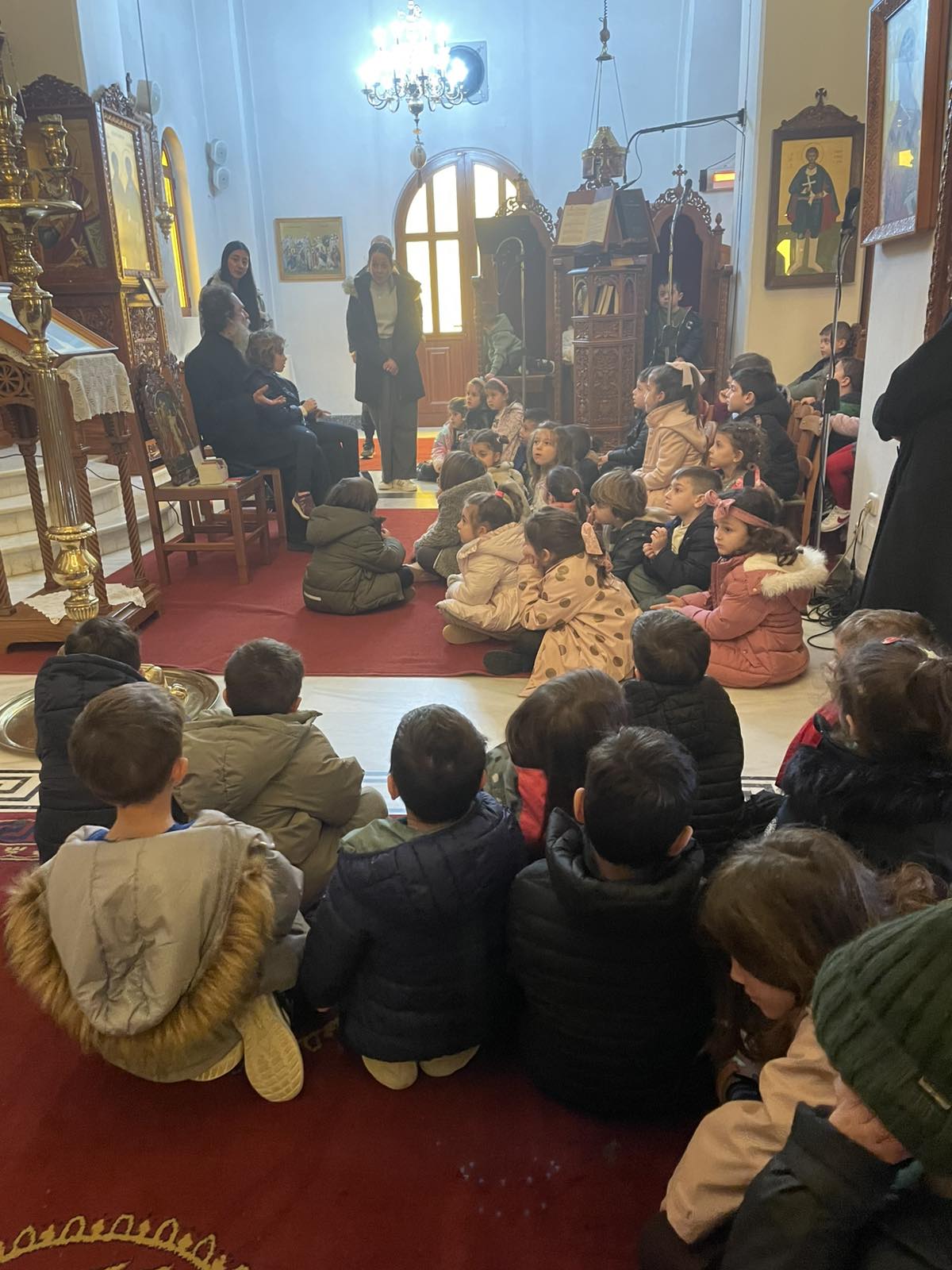 Παράλληλα, μέσα από έργα τέχνης και αγιογραφίες, γνωρίσαμε τη διπλή σημασία της ημέρας: τον Ευαγγελισμό της Θεοτόκου και την Επανάσταση. Στο πλαίσιο αυτό, επισκεφτήκαμε τον Ιερό Ναό του Αγίου Δημητρίου στα Κουνουπιδιανά, όπου ο παπάς της ενορίας μας υποδέχθηκε με αγάπη, μας μίλησε για το μήνυμα του Ευαγγελισμού και μας ξενάγησε στον χώρο της εκκλησίας.