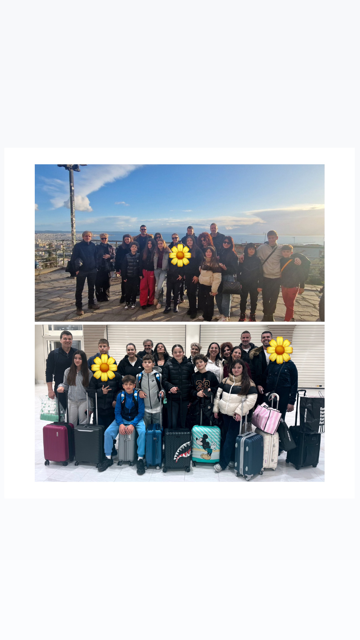 Γεμάτοι εικόνες, γνώσεις και δυνατές συγκινήσεις επέστρεψαν οι μαθητές της ΣΤ’ Τάξης από την τριήμερη εκδρομή τους στη Μακεδονία το διάστημα 27-29 Μαρτίου. Το ταξίδι μας ξεκίνησε από το αεροδρόμιο Χανίων με προορισμό τη Θεσσαλονίκη, όπου οι μαθητές είχαν την ευκαιρία να περιηγηθούν στην Άνω Πόλη, τα Κάστρα, την Πλατεία Αριστοτέλους και την Αγιά Σοφιά.